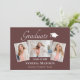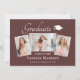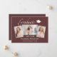 Lindos cartões de 3 fotos 7"x5", com anúncios de graduação. Apresentando texto moderno com um roteiro elegante de caligrafia. Suas fotos estão finamente revestidas com um molde branco para aquele "Pop" extra. O design é complementado com rosa de poeirento regal - fundo burgundy. A parte traseira do cartão oferece um espaço de texto de anúncio personalizado para esse formando especial. Para ver mais itens como este, visite minha loja aqui em "www.Zazzle.com/LakeViewCardCo". Obrigados