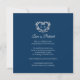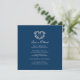 Um cartão de cancelamento de casamento com um monograma decorativo de coração prateado em branco e azul prussiano escuro. Ideal para usar como cartão de informação de casamento para informar seus convidados sobre o cancelamento de um casamento ou evento, ou remarcar devido a doença ou circunstâncias imprevistas. O desenho da grinalda de coração decorativo envolve os iniciais do seu monograma. Em efeito prateado lê-se casamento cancelado o amor é paciente. Outras opções de cores e itens correspondentes estão disponíveis. Desenho original por Sarah Trett para www.mylittleedenweddings.com