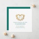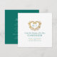 Um cartão de cancelamento de casamento com um monograma de coração dourado decorativo em branco e verde. Ideal para ser usado como cartão de informação de casamento para informar seus convidados sobre o cancelamento de um casamento ou evento, ou remarcar devido a doença ou circunstâncias imprevistas. Desenho de coroa de coração decorativo envolvendo as iniciais do seu monograma. Em um efeito dourado clássico, verde esmeralda e branco. Outras opções de cores estão disponíveis. Desenho original de Sarah Trett para www.mylittleedenweddings.com