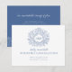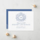 Um cartão de cancelamento de casamento faz parte do conjunto de casamento com monograma de folha desenhada à mão azul. Ideal para usar como cartão de informação de casamento para informar seus convidados sobre o cancelamento de um casamento ou evento, ou remarcar devido a doença ou circunstâncias imprevistas. Design simples de folhas circulares com o seu próprio monograma. Em tons bonitos de azul clássico médio a escuro e branco. Outros itens e opções de cores correspondentes estão disponíveis. Arte e design originais por Sarah Trett para www.mylittleedenweddings.com