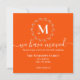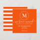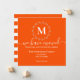 Este cartão de anúncio de mudança é sofisticado e elegante. Apresenta um fundo laranja intenso com um monograma de grinalda botânica branca e tipografia branca.