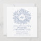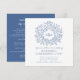 Cartão de anúncio de transmissão ao vivo de casamento com monograma de folha desenhada à mão em azul clássico. Este cartão simples, porém elegante, faz parte do conjunto de casamento com monograma de folha desenhada à mão em branco e azul. Ideal para usar como cartão de informações de casamento para informar os convidados de um evento de transmissão de casamento devido a circunstâncias imprevistas. Design simples de folhas circulando o seu próprio monograma. Em tons de azul clássico escuro e branco. Outras opções de cores estão disponíveis. Design original de Sarah Trett www.sarahtrett.com para www.mylittleedenweddings.com