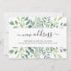 Avise a família e os amigos sobre seu novo endereço com este cartão de anúncio botânico. É decorado com aquarela eucalipto verde e tipografia com script de na moda. Facilmente personalizável. Original Watercolor © Michele Davies.