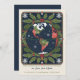 Cartão de Natal divertido de uma nova casa ilustrado com globo retro, caprichoso, com uma imagem de vintage, flocos de neve e holly. Na legenda lê-se "Feliz Natal do nosso novo canto do mundo" seguido pelos seus nomes e pelas coordenadas de latitude e longitude para o seu novo endereço. Dito isto, toda a redação é perfeitamente editável para personalizar o seu anúncio em movimento de férias, como desejar.