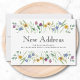 Este cartão de anúncio em movimento floral é decorado com delicadas flores de aquarela e folhagem em tons pastéis. Facilmente personalizável. Original Watercolor © Michele Davies.