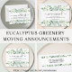 Avise a família e os amigos sobre seu novo endereço com este cartão de anúncio de orçamento. É decorada com água de eucalipto verde. Facilmente personalizável. Porque nós criamos a nossa trabalho de arte, você não encontrará esta imagem exata de outros designers. Original Watercolor © Michele Davies.