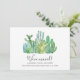 Os modernos cactos de aquarela, anunciando em movimento para que amigos, colegas de trabalho, vizinhos e familiares saibam sobre sua nova casa. O design apresenta plantas de cacto de aquarela verde, com campos para personalizar este cartão de anúncio "Nós Mudamos" com o(s) seu(s) nome(s) e novos detalhes de endereço. Adicione uma mensagem personalizada aos amigos e à família no verso, bem como clicando no botão "Personalizar".
