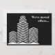 Nossos escritórios mudaram edifícios, por favor atualize seu livro de endereços. Basta preencher os espaços de texto com as informações personalizadas da sua empresa para enviar a alteração do cartão de endereço a todos os seus contatos comerciais e clientes. Chic, moderno desenho branco de prédios brancos em um anúncio em movimento preto.