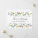 Este cartão de anúncio em movimento botânico é decorado com delicadas flores de aquarela e folhagem em tons pastéis. Facilmente personalizável. Original Watercolor © Michele Davies.