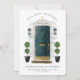 Avise sua família e amigos que você mudou para sua nova casa com nosso novo e elegante cartão de anúncio. Nosso design apresenta nossa própria porta verde frontal do caçador de aquarelas pintada manualmente. Destacado com toques de ouro no slot da caixa de correio, manípulo da porta e placa de entrada. Luzes escuras modernas de parede exterior e uma porta de boas-vindas de uma toca completa esta nova e encantadora design. Personalize com seu novo número de endereço residencial na porta frontal e adicione seu nome e informações de endereço. O reverso apresenta um ousado e moderno padrão de riscas verdes e brancas. Todas as ilustrações são obras de arte originais pintadas manualmente pela Moodthology.