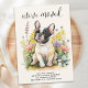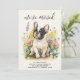 Anuncie a sua mudança para a família e amigos com o nosso bonito anúncio comovente do cachorrinho francês. Este anúncio comovente do cão apresenta um cachorrinho francês, perfeito para amantes de cães e famílias francesas. O design é um estilo moderno de bolor e aquarela com sotaques florais em tons de rosa, azul roxo e amarelo. Deixe este produto ajudá-lo a compartilhar suas interessantes notícias com a família e os amigos. Avise a todos que "nos mudamos!" e convide-os a visitarem-se e conhecerem o seu melhor amigo na sua nova casa. COPYRIGHT © 2023 Judy Burrows, Black Dog Art - Todos Os Direitos Reservados. Nós mudamos o anúncio do Bulldog Francês, Puppy Floral Dog Movendo