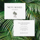 Tropical, mudamos para a praia... e mudamos o cartão de anúncio. Com uma simples tipografia e um design de palmeiras desenhadas à mão, as letras negras podem ser personalizadas com suas informações. Excelente por deixar os entes queridos saberem da sua nova casa perto da praia ou nos trópicos.
