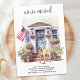 Anuncie sua mudança para a família e amigos com nosso anúncio patriótico e comovente com uma bela pintura aquosa de um cão Labrador Amarelo, uma casa moderna com uma porta azul e a bandeira americana orgulhosamente exibida na varanda da frente. Este anúncio é perfeito para amantes de cães e qualquer um que queira anunciar seu novo endereço. Com seu esquema de cores vermelho, branco e azul, este anúncio é uma forma excelente de mostrar seu amor pelos EUA enquanto compartilha suas notícias emocionantes. Avise a todos que "nos mudamos!" e convide-os a visitarem-se e conhecerem o seu melhor amigo na sua nova casa. COPYRIGHT © 2023 Judy Burrows, Black Dog Art - Todos Os Direitos Reservados. Anúncio de Movimentação Patriótica Personalizada de Cão Amarelo Labrador