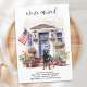 Anuncie sua mudança para a família e amigos com nosso anúncio patriótico e comovente com uma bela pintura aquosa de um cão Black Labrador, uma casa moderna com uma porta azul e a bandeira americana orgulhosamente exibida na varanda da frente. Este anúncio é perfeito para amantes de cães e qualquer um que queira anunciar seu novo endereço. Com seu esquema de cores vermelho, branco e azul, este anúncio é uma forma excelente de mostrar seu amor pelos EUA enquanto compartilha suas notícias emocionantes. Avise a todos que "nos mudamos!" e convide-os a visitarem-se e conhecerem o seu melhor amigo na sua nova casa. COPYRIGHT © 2023 Judy Burrows, Black Dog Art - Todos Os Direitos Reservados. Anúncio de Movimentação Patriótica Personalizada do Cão Negro Labrador