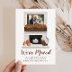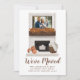 Anuncie sua mudança e novo endereço para amigos e família com nosso anúncio exclusivo da Lareira rustic Farmhouse! O anúncio de queda apresenta a foto horizontal da sua família em uma armação de madeira escura montada em uma lareira de tijolos esbranquiçada. O manto de lareira é decorado com uma terra de folhas de outono de cor d'água com velas brancas, abóboras brancas e laranja, e com outras decorações de queda localizadas no coração. Personalize o anúncio de movimentação de fotos da família com seu nome, endereço e outro texto. A parte traseira fornece espaço adicional para texto e imagens. O cartão de anúncio em movimento é perfeito para o outono e Ação de Graças.