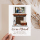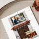Anuncie sua mudança e novo endereço para amigos e família com nosso anúncio exclusivo da Lareira rustic Farmhouse! O anúncio de queda apresenta a foto horizontal da sua família em uma estrutura de madeira escura montada em uma lareira de pedra cinza. O manto de lareira é decorado com uma terra de folhas de outono de cor d'água, com lanternas de ferro em formas pretas, velas, abóboras brancas e laranja, e outras decorações de queda localizadas no coração. Personalize o anúncio de movimentação de fotos da família com seu nome, endereço e outro texto. A parte traseira fornece espaço adicional para texto e imagens. O cartão de anúncio em movimento é perfeito para o outono e Ação de Graças.