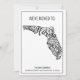 Envie a sua família e amigos, este boho do tema estado da Flórida, um novo endereço movendo a carta de apresentação. Esta design moderna apresenta uma ilustração a preto e branco do estado da Geórgia, realçada por uma mandala floral. A parte superior da placa diz "Nós nos mudamos para:" Abaixo da ilustração de estado está seu nome e novo endereço para personalizar. A parte de trás do cartão postal tem uma mensagem e uma assinatura que você também pode personalizar. Desenhada por Susan Coffey.