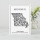 Envie sua família e amigos para este boho de Missouri... novo endereço movendo cartão plano de anúncio. Esta design moderna mostra uma ilustração a preto e branco do estado do Missouri acentuada por uma mandala floral. A parte superior da placa diz "Nós nos mudamos para:" Abaixo da ilustração de estado está seu nome e novo endereço para personalizar. A parte de trás do cartão postal tem uma mensagem e uma assinatura que você também pode personalizar. Desenhada por Susan Coffey.