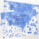 Apresentando uma pintura de aquarela original de casas e apartamentos azuis e brancos sob um céu azul profundo, este anúncio é a maneira perfeita de deixar seus amigos e família saberem sobre sua grande jogada! Altere o texto e os detalhes para personalizar. Arte original de Nic Squirrell.