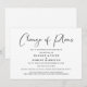 Moderno e minimalista anúncio de mudança de planos de casamento preto e branco, adiamento ou cancelamento. "Mudança de Planos" é escrito em uma fonte estilosa e você pode facilmente personalizar se o casamento foi cancelado, a data foi adiada ou quaisquer outros detalhes foram alterados.