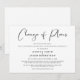 Se as circunstâncias exigirem que você reduza o seu casamento, você pode informar sua lista original de convidados com este anúncio de casamento reduzido moderno e minimalista, porém elegante, em preto e branco. "Mudança de Planos" é escrito em uma fonte estilosa e você pode personalizar facilmente a mensagem de redução do casamento em mais detalhes e adicionar qualquer informação de transmissão ao vivo da cerimônia e site do casamento.
