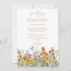 Cartão De Anúncio De Mudança De Planos De Flores Silvestres Coloridas Adiamento Casamento apresenta lindas flores campestres em laranja, amarelo, roxo e rosa em um fundo branco com as informações de mudança de planos/adiamento do seu casamento. Personalize editando o texto nas caixas de texto. Criado para você por Evco Studio www.zazzle.com/store/evcostudio
