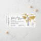 Mudança no anúncio de Data de um casamento de destino que parece uma passagem de avião com um design de mapa mundial elegante em um design de tema de viagem de folha de ouro falso com "Departura Atrasada" como uma reviravolta divertida para um anúncio sobre o tema viagem. Todas as cores de texto e fundo são editáveis para que você possa criar seu próprio design usando este modelo para um cartão de embarque único que foi projetado com um casamento de destino ou um casamento do tema viagem ou uma celebração de renovação de votos em mente. Visite a coleção Destinos de Fita de Papel do Zazzle Designer para coordenar itens.
