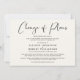 Se circunstâncias como as diretrizes de distanciamento social exigirem que você reduza a presença no seu casamento, você pode informar familiares e amigos na sua lista de convidados estendida original com este anúncio de casamento reduzido moderno e minimalista, mas elegante, em creme claro. "Mudança de Planos" é escrito em uma fonte estilosa e você pode personalizar a mensagem de redução do casamento em mais detalhes e adicionar qualquer transmissão ao vivo da cerimônia, celebrações futuras e informações do site do casamento.