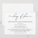 Se circunstâncias imprevistas exigirem que você reduza o tamanho do seu casamento, você pode informar os convidados que não poderão comparecer com este anúncio de casamento reduzido moderno e minimalista, mas elegante, preto e branco. "Mudança nos Planos" é escrito em um script moderno e você pode personalizar facilmente a mensagem de redução do casamento em mais detalhes e adicionar quaisquer eventos de casamento virtual e celebrações futuras.