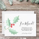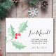 Ele é decorado com aquarela de azevinho e frutos em tons de verde e vermelho.