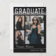 Cartões de anúncio de tendências, modernos e na moda, com elementos design do texto moderno com assinatura manuscrita. Três fotos de formando realçam a parte frontal da placa com "Formando" realçado em um elegante gradiente branco. O verso do cartão oferece espaços de texto personalizados para informações sobre sua graduação e futura jornada. Escrevendo branco em preto real ou personalize facilmente o fundo para corresponder à cor primária da sua escola ou a qualquer cor de sua escolha. Perfeito para o segundo grau, faculdade e formando universitário.