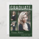 Cartões modernos, modernos e de na moda, contendo elementos design do texto moderno com assinatura manuscrita. Três fotos de formando realçam a parte frontal da placa com "Formando" realçado em um elegante gradiente branco. O verso do cartão oferece espaços de texto personalizados para informações sobre sua graduação e futura jornada. Escrevendo branco sobre floresta caçadora ou personalize facilmente o fundo para corresponder à cor primária de sua escola ou a qualquer cor de sua escolha. Perfeito para o segundo grau, faculdade e formando universitário.