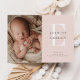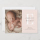 O anúncio de nascimento de três fotos do bebê cor-de-rosa Blush inicial moderno mostra sua foto vertical na frente, junto com o lançamento do bebê. Mais duas fotos estão atrás.