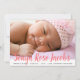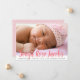 O Anúncio de Nascimento da Sobreposição de Script Rosa do Nome da Rapariga Recém-nascida vem com uma grande foto na frente. O nome da sua menina é uma sobreposição de cor-de-rosa, abaixo está a linha com as estatísticas de natalidade. A parte de trás é um padrão rosa legal