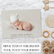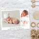Uma foto mínima de colagem de bebê ou anúncio de nascimento de bebê. A foto de seu recém-nascido preenche a frente, sobreposta pelo seu nome, data de chegada e estatísticas de natalidade em uma tipografia simples e moderna (você pode mover o texto para se adequar à sua foto selecionando "editar usando a design também"). No verso, adicione três fotos adicionais e sua mensagem "bem-vinda".