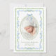 Anúncio de nascimento charmoso e único, com quadros verdes e azuis de cor azul inspirados na safra complementados por um arco de coquete, a foto do seu bebê e suas estatísticas de nome e natalidade na típica serifpografia verde-clássica. No verso, adicione uma foto adicional e sua mensagem personalizada à família e aos amigos.