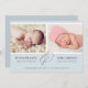 Este moderno anúncio de nascimento minimalista foi projetado para recém-nascidos gêmeos. A placa apresenta duas fotos grandes de seus novos feixes de alegria, com um quadro branco. Abaixo das fotos, adicione seus nomes e estatísticas de natalidade em simples letras modernas. Um bonito amperse é colocado entre os dois nomes. Ao longo do fundo, você pode adicionar seus aniversários e seus nomes. A frente do cartão é um tom macio de azul claro, e a parte de trás é um azul mais escuro e totalmente personalizável — você pode mudar a cor de fundo, adicionar mais fotos e incluir uma nota personalizada aos entes queridos.