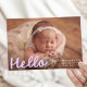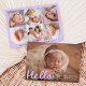 Seja bem-vindo ao seu pequeno estilo, com este anúncio de nascimento de fotos, que mostra a foto horizontal do seu bebê com "Olá", exibido em uma capa divertida de roteiro de lavanda. Adicione o nome do seu bebê, a data de nascimento, e as estatísticas à frente para criar uma manutenção verdadeiramente pessoal. O verso mostra uma colagem de seis fotos quadradas com espaço abaixo para incluir nomes familiares ou uma mensagem sincera. Uma escolha encantadora para meninas ou temas sonhentos e inspirados em pastel.