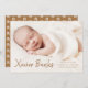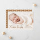 Um doce anúncio de nascimento de fotos com o nome moderno do roteiro no topo do cheio sangrou uma foto horizontal da paisagem.
