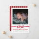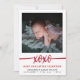 Elegante cartão com fotos de anúncio de nascimento de Dia de os namorados com foto de solteiro do bebê, roteiro xoxo em cor vermelha profunda em um fundo branco, conheça nosso pequeno roteiro de namorados, status de nome e nascimento.