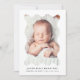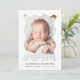 Celebre a chegada do seu bebê com este anúncio de nascimento moderno e neutro em termos de gênero! A design minimalista mostra a foto vertical do seu pequeno, lindamente emoldurada num quadro lúcido e lúcido sobre fundo branco. Adicione o nome do seu bebê e as estatísticas de natalidade abaixo em fontes na moda e contemporâneas. A parte traseira apresenta uma foto horizontal com espaço para sua mensagem personalizada, fazer fácil compartilhar uma nota doce com os entes queridos. Um design simples, mas encantador, com uma sutil vibração retrô!