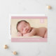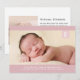 Este doce anúncio de nascimento apresenta um monograma clássico e design tradicional. A frente do cartão de nascimento inclui uma grande foto horizontal para bebês. Um dentro inicial de monograma branco, uma caixa cor-de-rosa bonito, cobre a foto. Você pode personalizar a cor da caixa e do monograma; você também pode movê-los para o ajustado com sua própria foto. O nome do cheio do seu bebê, a data de nascimento e as estatísticas de natalidade também estão na frente do cartão, escrito em branco contra um fundo rosa. A parte de trás do anúncio de nascimento inclui uma segunda foto e uma modelo onde você pode escrever uma mensagem personalizada mais longa para os destinatários.