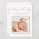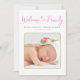 O rosa está sempre em voga para bebês e este anúncio de nascimento é perfeitamente cor-de-rosa com sotaques verdes. Informe sua família e amigos em estilo com uma descrição personalizada e foto de seu recém-nascido, e forneça algumas palavras de obrigados para aqueles que ficaram com você durante o processo de gravidez ou adoção. Este Anúncio de Nascimento Moderno da Menina Nova, certamente encantará os destinatários! Design ©Vann-Horn Creative PHoto & Designs.