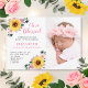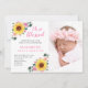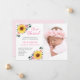 Este anúncio de nascimento apresenta um bonito girassol e um design floral cor de água rosa. Personalize-o com sua foto e texto.