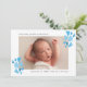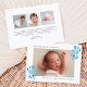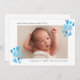 Anuncie a chegada do seu bebê com este charmoso anúncio de nascimento fotográfico apresentando sua foto horizontal rodeada de luz lúdica e corações azuis escuros em cada esquina. A paleta azul clássica faz dela uma escolha perfeita para os meninos ou qualquer um que ama um design de tom legal e eterno. Personalize a frente com o nome do seu bebê e as estatísticas de natalidade, e adicione três fotos quadradas com uma mensagem personalizada no verso. Um bem-estar doce e moderno para familiares e amigos.