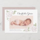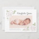 Este anúncio de nascimento apresenta flores silvestres modernas desenhadas manualmente nos cantos que enquadram e realçam a sua nova chegada. Todas as cores e fontes são editáveis para que você torne isso exclusivamente seu. Você também pode adicionar fotos e texto adicional ao verso, se desejar.