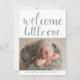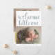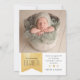 Cartão de anúncio de nascimento moderno com duas fotografias, acompanhado de uma elegante caligrafia em aquarela e de elementos dourados desenhados à mão no verso. Esta design moderna fará suas fotos de bebê brilharem!