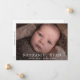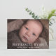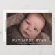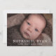 Cartão de nascimento de garoto moderno com design limpo e minimalista com nome de bebê em uma fonte serif grande junto com suas estatísticas de nascimento sobre sua foto de sangria de cheio favorita. O verso tem uma imagem quadrada junto com sua mensagem personalizada em preto sobre um fundo branco. Esta simples carta, mas elegante, é uma forma excelente de anunciar a chegada do seu bebê.