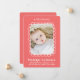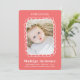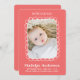 Anúncio de nascimento de fotos simples e doce com uma estrutura retangular em forma de branco desenhada à mão, campos de texto editáveis para seus detalhes em uma combinação correspondente de tipos de serifa sans modernos e brincalhões em branco e um espaço reservado para uma foto vertical de solteiro em um fundo vermelho. Personalize facilmente este design para corresponder ao seu estilo clicando em "Personalizar" para ir para a ferramenta design e adicionar o seu próprio texto ou detalhes personalizados.