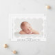 Anúncio de nascimento simples e moderno com a foto do seu bebê aninhada dentro de um quadro branco redimensionado. Personalize o anúncio de nascimento adicionando o nome do seu bebê e informações adicionais em letras negras.